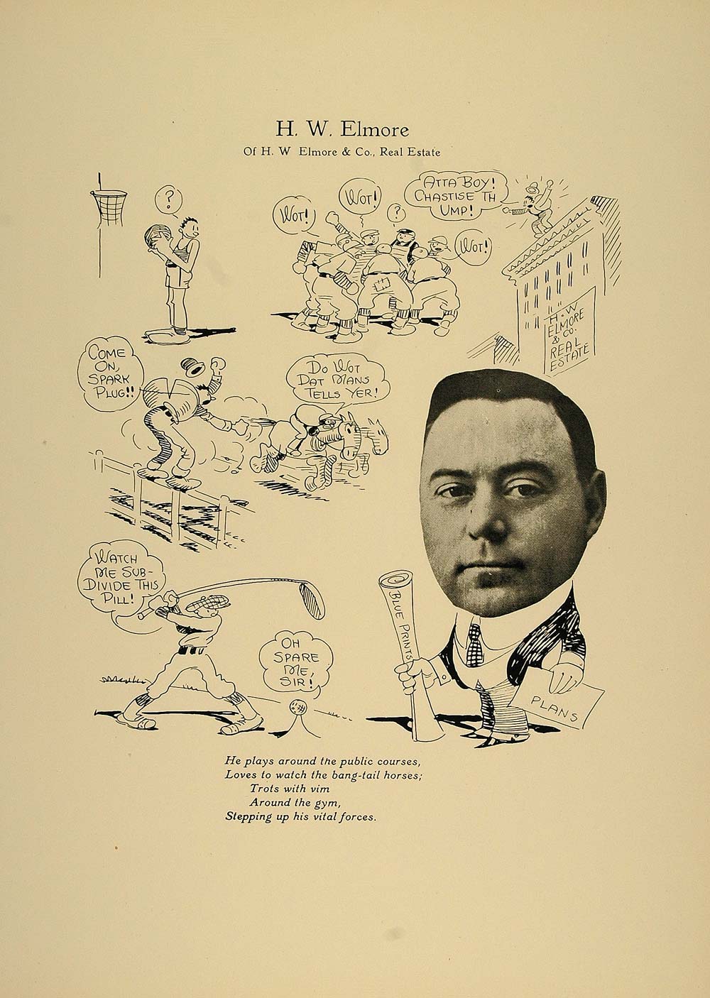 This is an original 1923 black and white print of H. W. Elmore, a Chicago real estate developer, whose other interests include baseball, basketball, horse races, and golf.