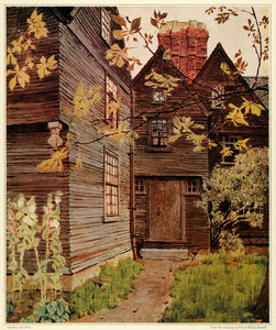 This is an original 1923 color print of the historic House of Seven Gables (formerly known as the Ingersoll house) in Salem, Massachusetts.