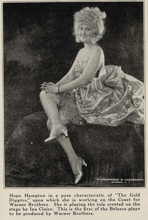 This is an original 1923 halftone print of Hope Hampton (1897 - 1982), the star of the Warner Brothers silent film comedy "The Gold Diggers." This is an excellent historical print item for the silent film collector!