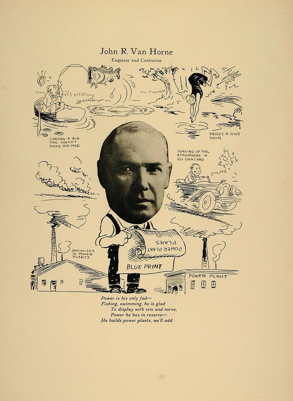 This is an original 1923 black and white print of John R. Van Horne who specialized in designing Power Plants. His interests included fishing, swimming, and driving his Oakland.