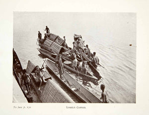 This is an original 1923 black and white halftone print of natives of the Lokele tribe of Africa unloading the cargo from their canoes. Please note page reference explanations are not included.