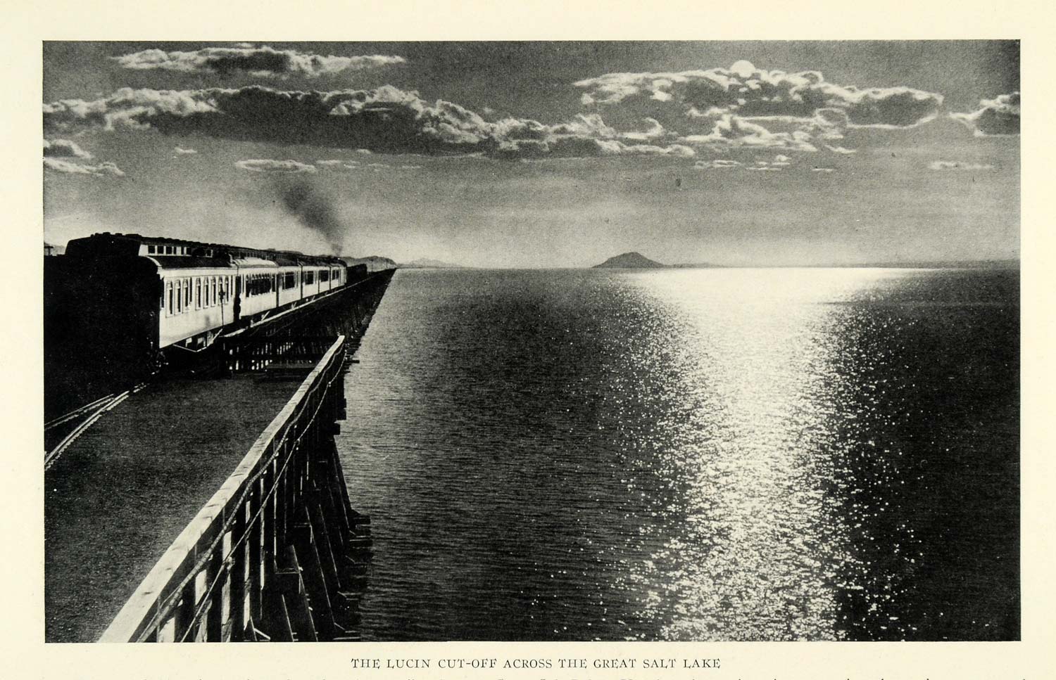 This is an original 1923 halftone print of the Lucin Cutoff, which was built by the Southern Pacific Company during the early 1900s.