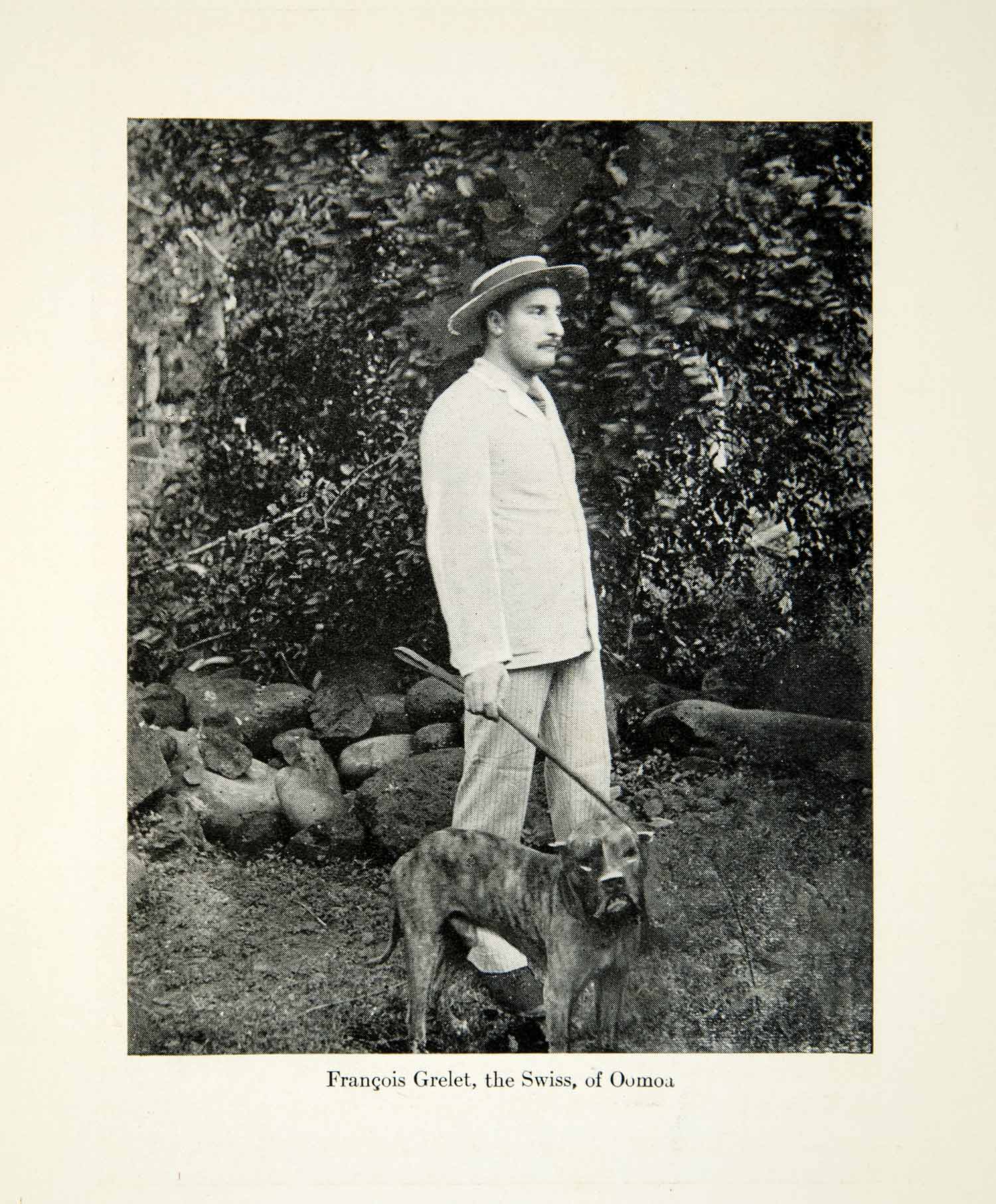 This is an original 1923 black and white halftone print of Francis Grelet, the Swiss of Oomoa.