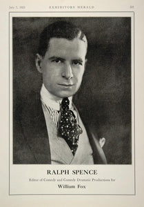 This is an original 1923 halftone print portrait of Ralph Spence, editor of comedy and comedy dramatic productions for William Fox. This is an excellent historical print item for the silent film collector!