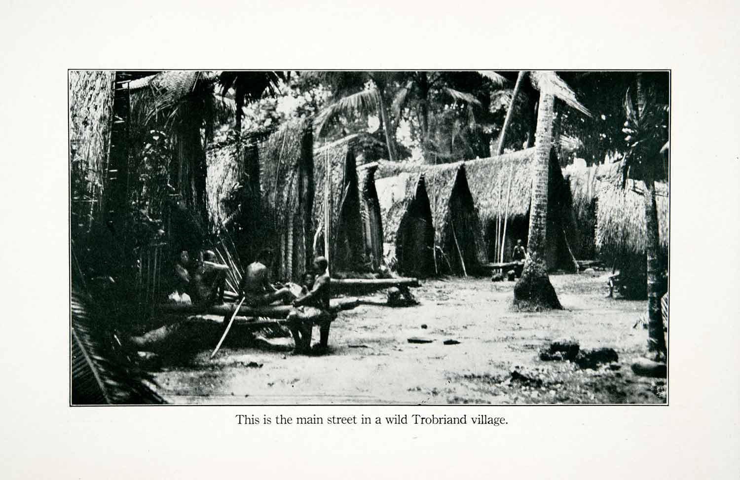 This is an original 1923 black and white halftone print of a village in the Kiriwina Islands.