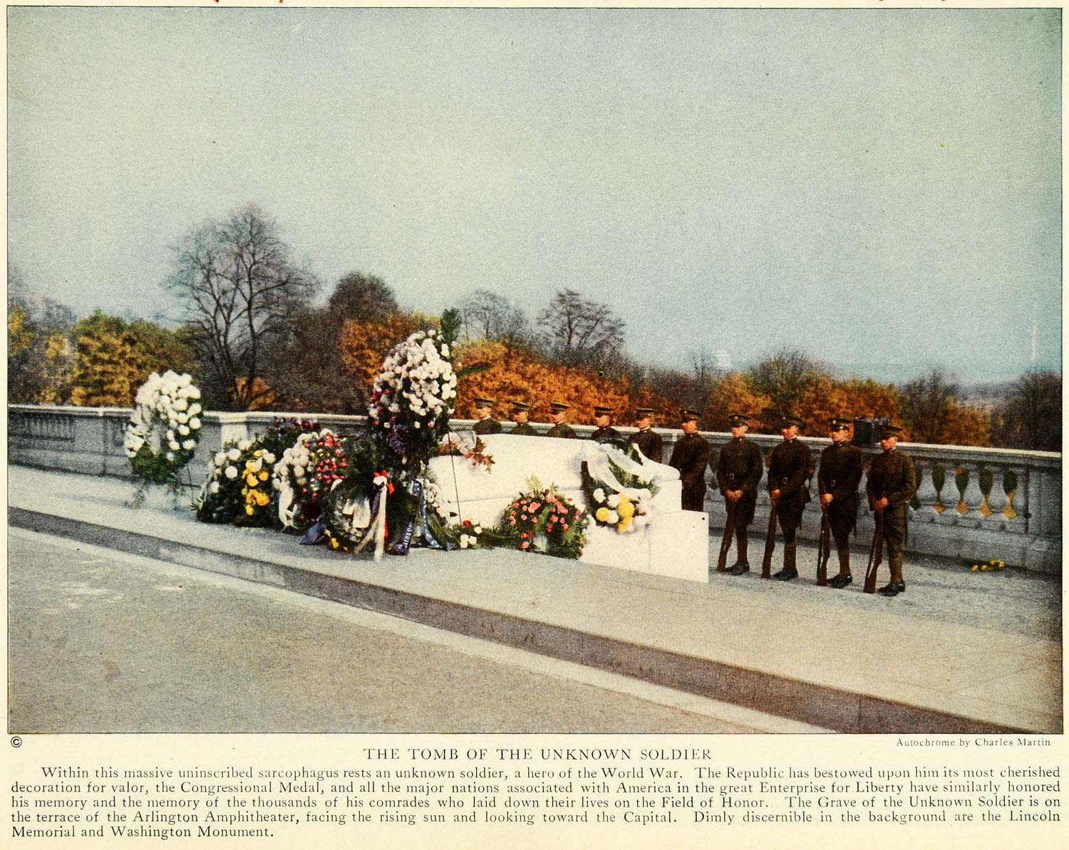 This is an original 1923 color print of The Grave of the Unknown Soldier on the terrace of the Arlington Amphitheater in Washington, D. C. Photography courtesy of Charles Martin.