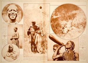 This is an original 1923 double-page sepia rotogravure with various scenes of African people.