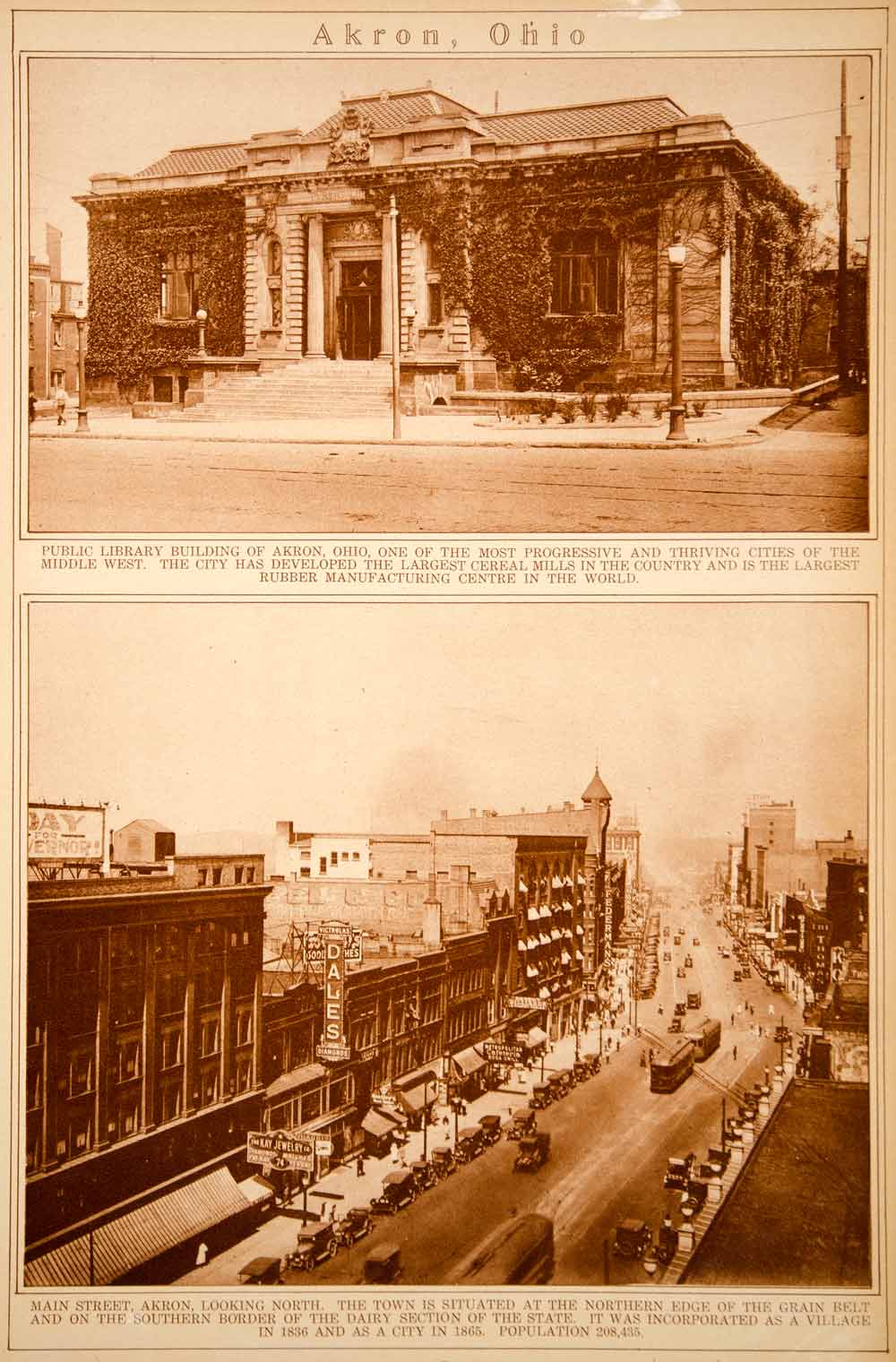 1923 Rotogravure Akron Ohio Cityscape Public Library Main Street Historic Views