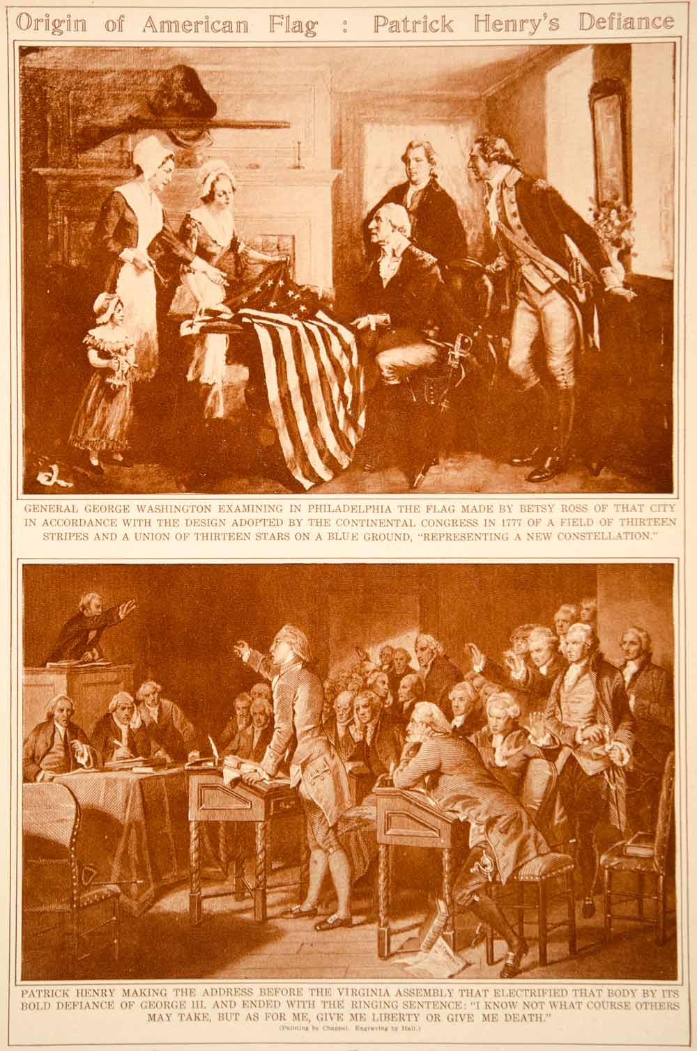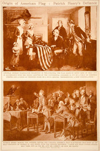 1923 Rotogravure American Revolutionary War Art Betsy Ross Flag Patrick Henry