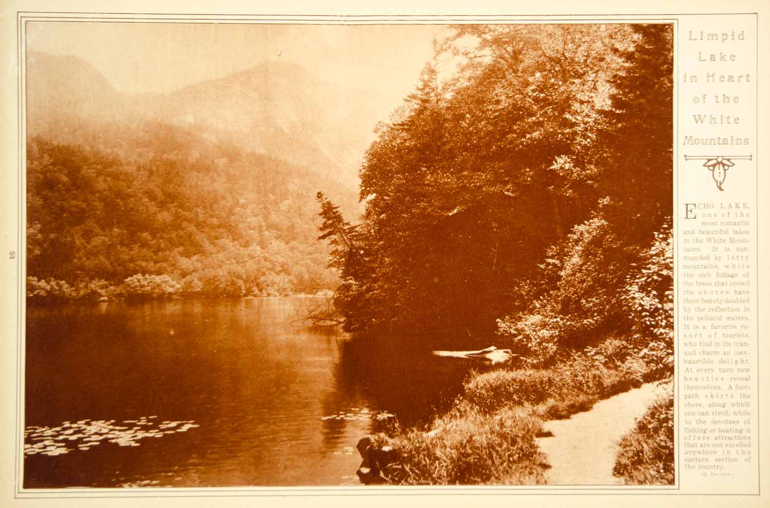 This is an original 1923 sepia rotogravure of Echo Lake in the White Mountains of New Hampshire.