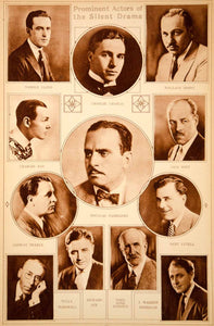 This is an original 1923 sepia rotogravure with portraits of some of the famous actors of the silent film era: Harold Lloyd; Charlie Chaplin; Wallace Beery; Jack Holt; Douglas Fairbanks; Charles Ray; Conway Tearle; Bert Lytell; J. Warren Kerrigan; Theodore Roberts; Richard Dix; and Tully Marshall. An excellent original print item for the collector of early movie memorabilia!
