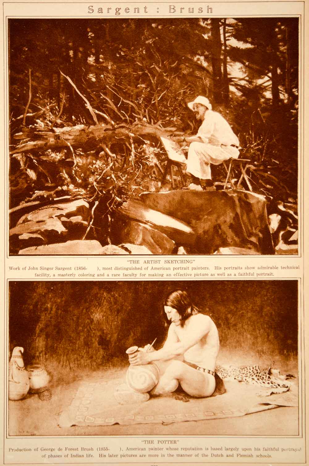 1923 Rotogravure John Singer Sargent George de Forest Brush Indian Potter Art