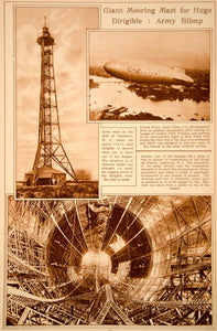 1923 Rotogravure Lakehurst NJ Dirigible Mooring Mast Blimp ZR-1 Airship Historic
