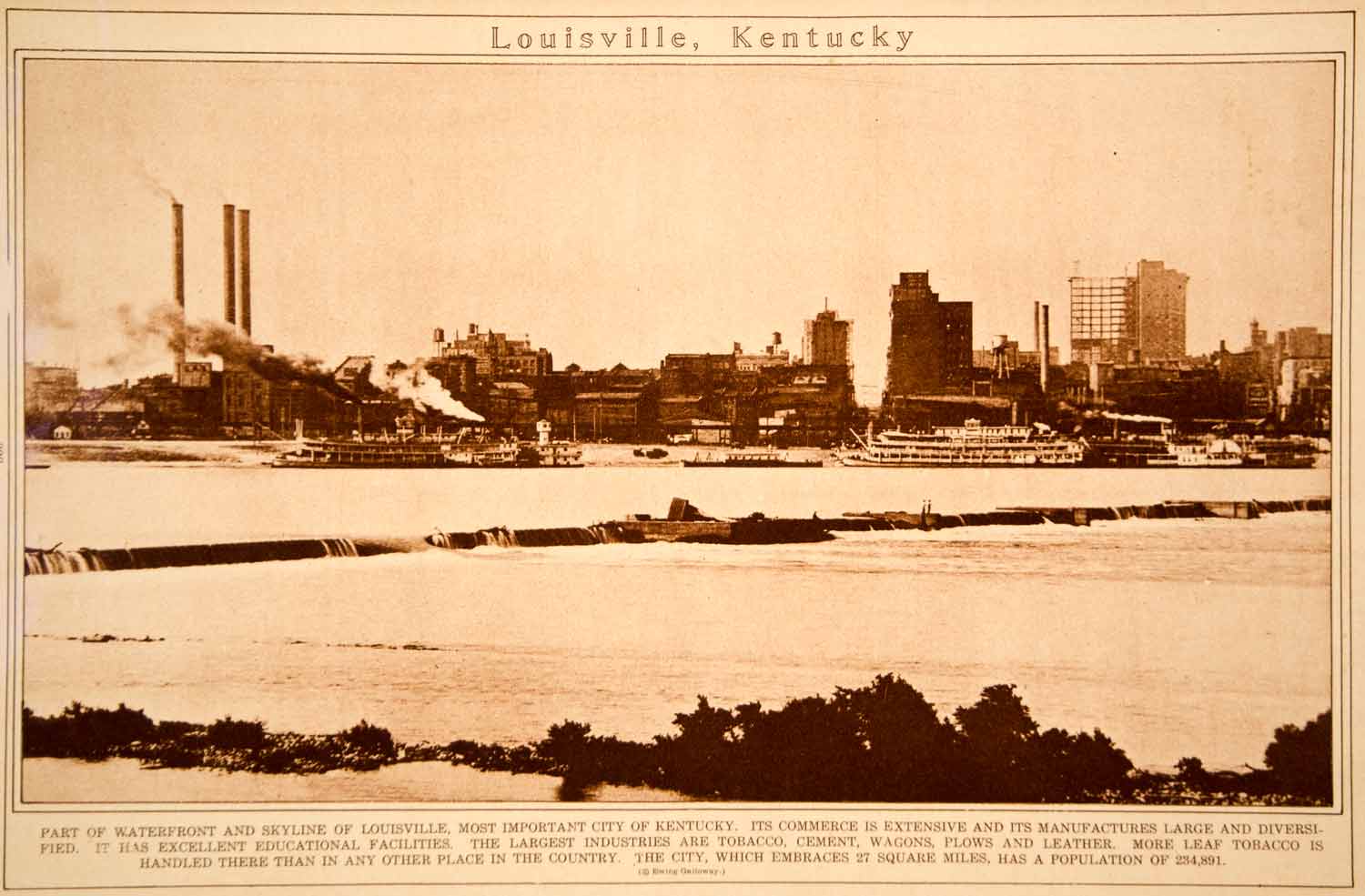 This is an original 1923 sepia rotogravure of the city of Louisville, Kentucky on the Ohio River. At the time its population was 234,891.