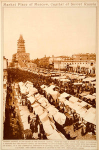 This is an original 1923 sepia rotogravure of the market in Moscow, Russia.
