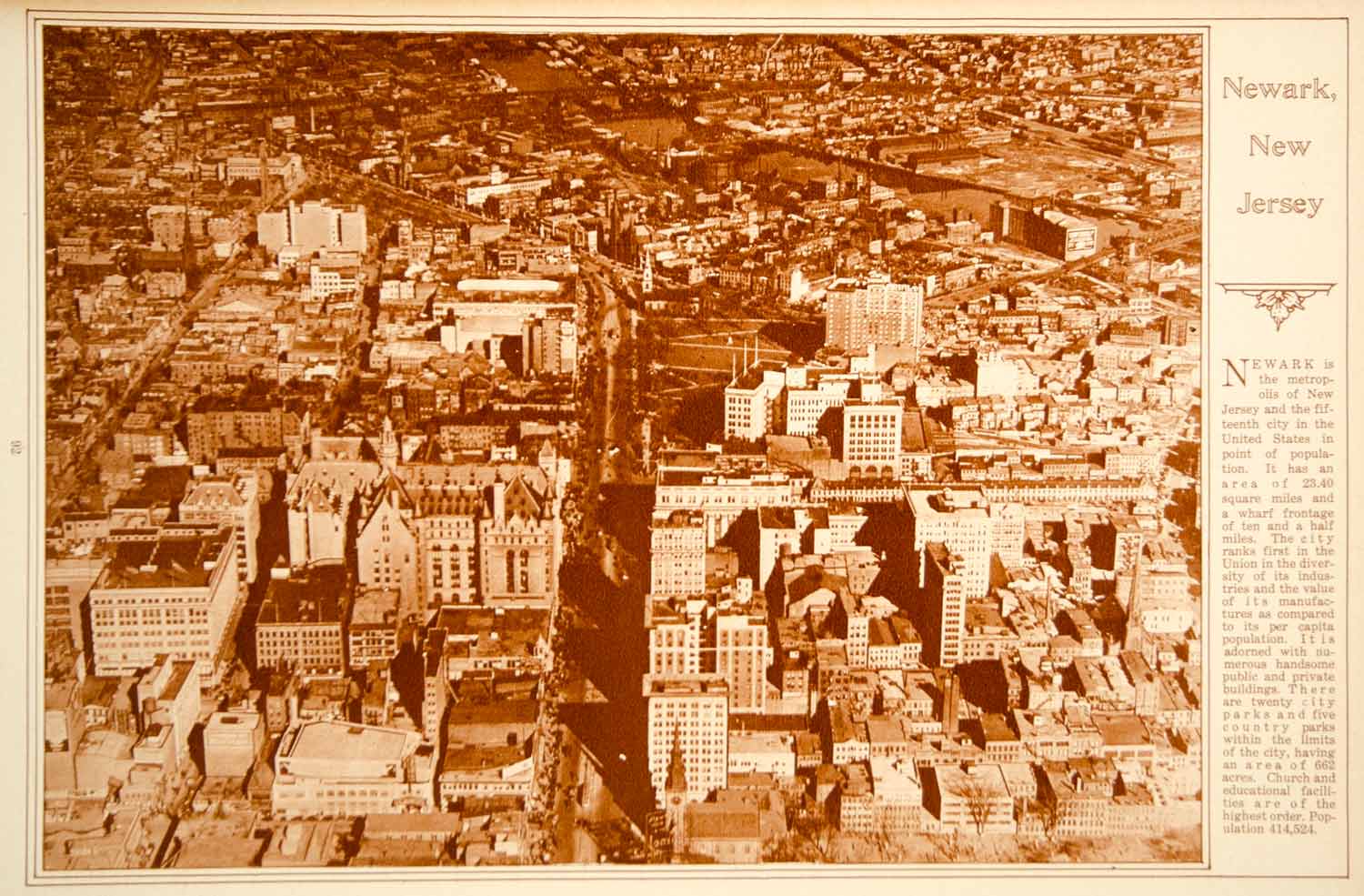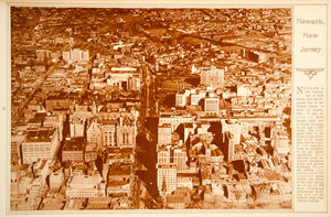 1923 Rotogravure Newark New Jersey Aerial Bird's Eye View Historic Cityscape