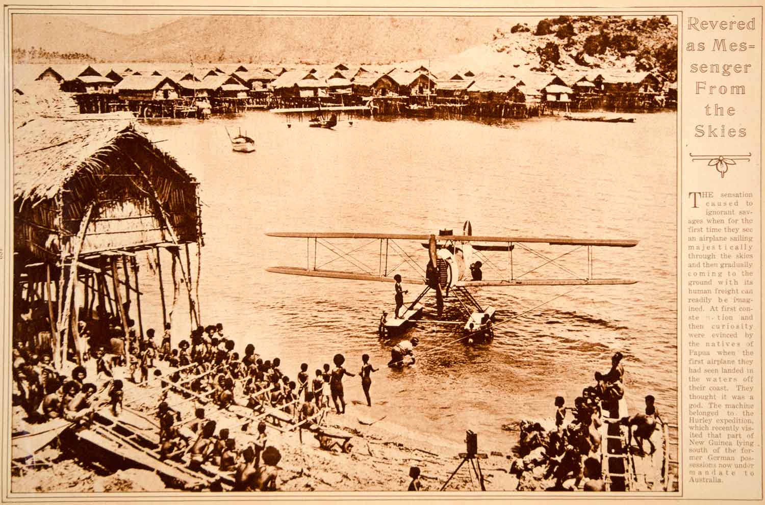1923 Rotogravure Papua New Guinea Village Airplane Frank Hurley Cargo Cult God