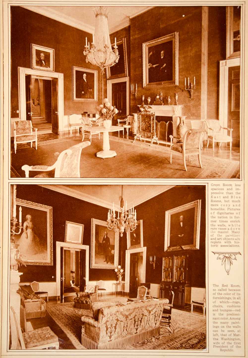 1923 Rotogravure White House Interior Green Red Room Furniture Historic Views