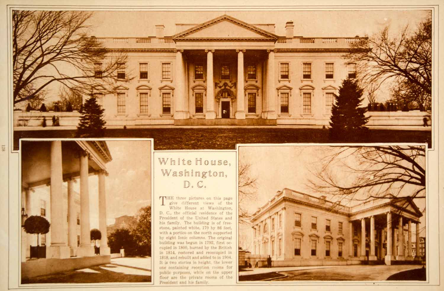 This is an original 1923 sepia rotogravure with three views of the White House, the official residence of the President and family in Washington, D. C.