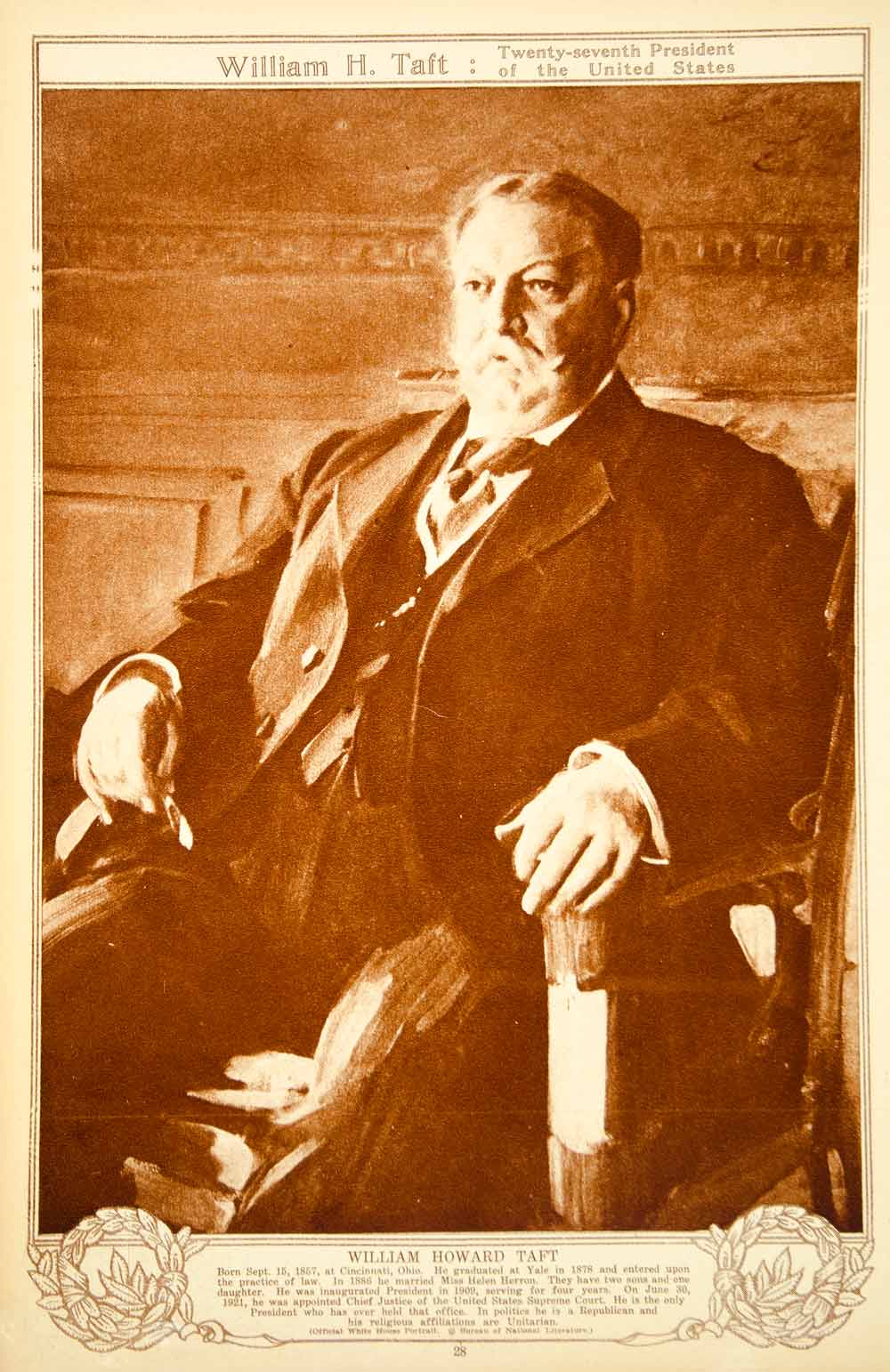 This is an original 1923 sepia rotogravure of the official White House portrait of William Howard Taft, the twenty-seventh President of the United States.