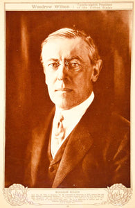 This is an original 1923 sepia rotogravure of a portrait by A. F. Bradley of Woodrow Wilson, the twenty-eighth President of the United States.