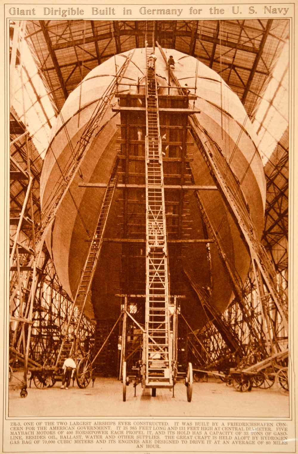 1923 Rotogravure ZR-3 Dirigible Rigid Airship Zeppelin USS Los Angeles Historic