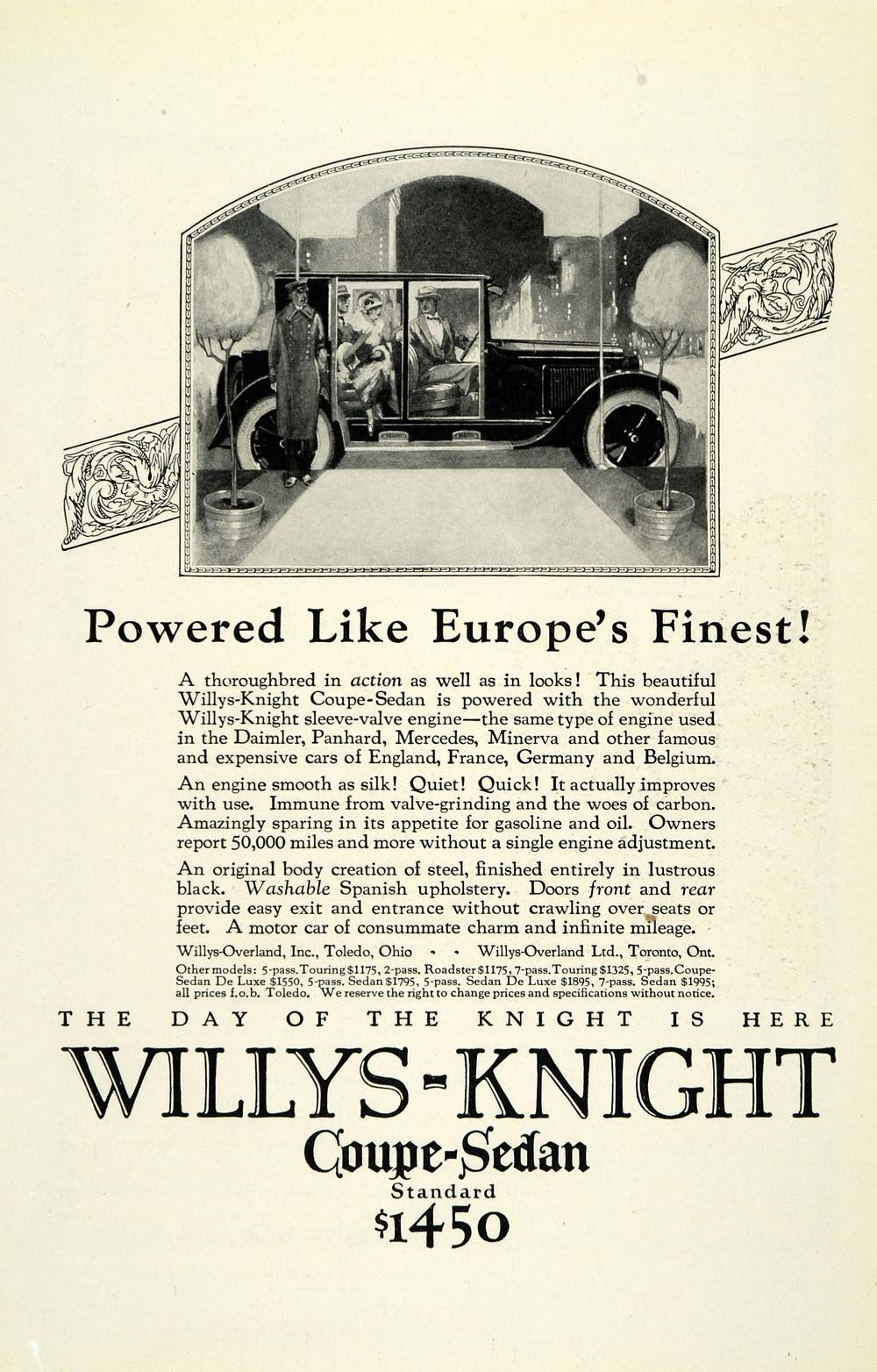 This is an original 1924 black and white print ad for the Willys-Knight Coupe Sedan, a product line by Willys-Overland, Inc. of Toledo, Ohio.
