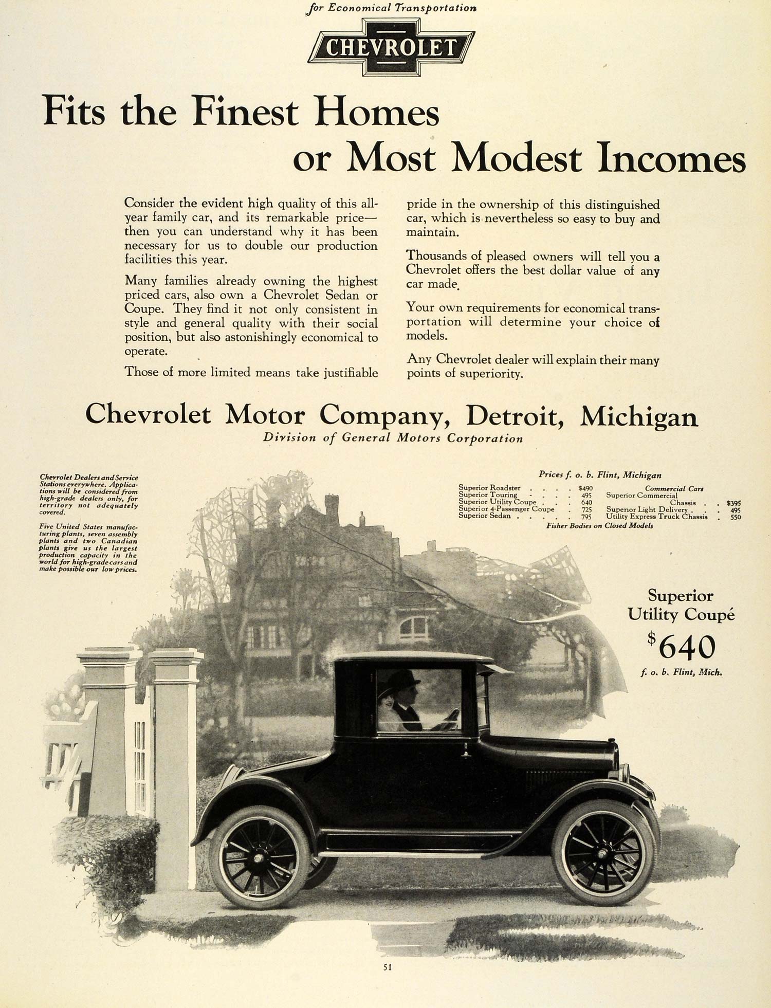 Keywords specific to this image: Vintage Advertising, Flint Michigan, Pricing, Models, Economical Transportation,