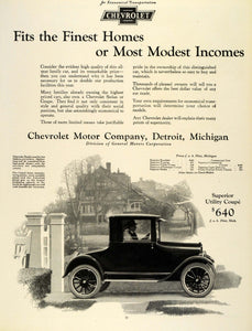 This is an original 1924 black and white print ad for the Chevrolet Motor Company of Detroit, Michigan, a division of the General Motors Corporation. This particular ad features the Chevrolet Superior Utility Coupe.