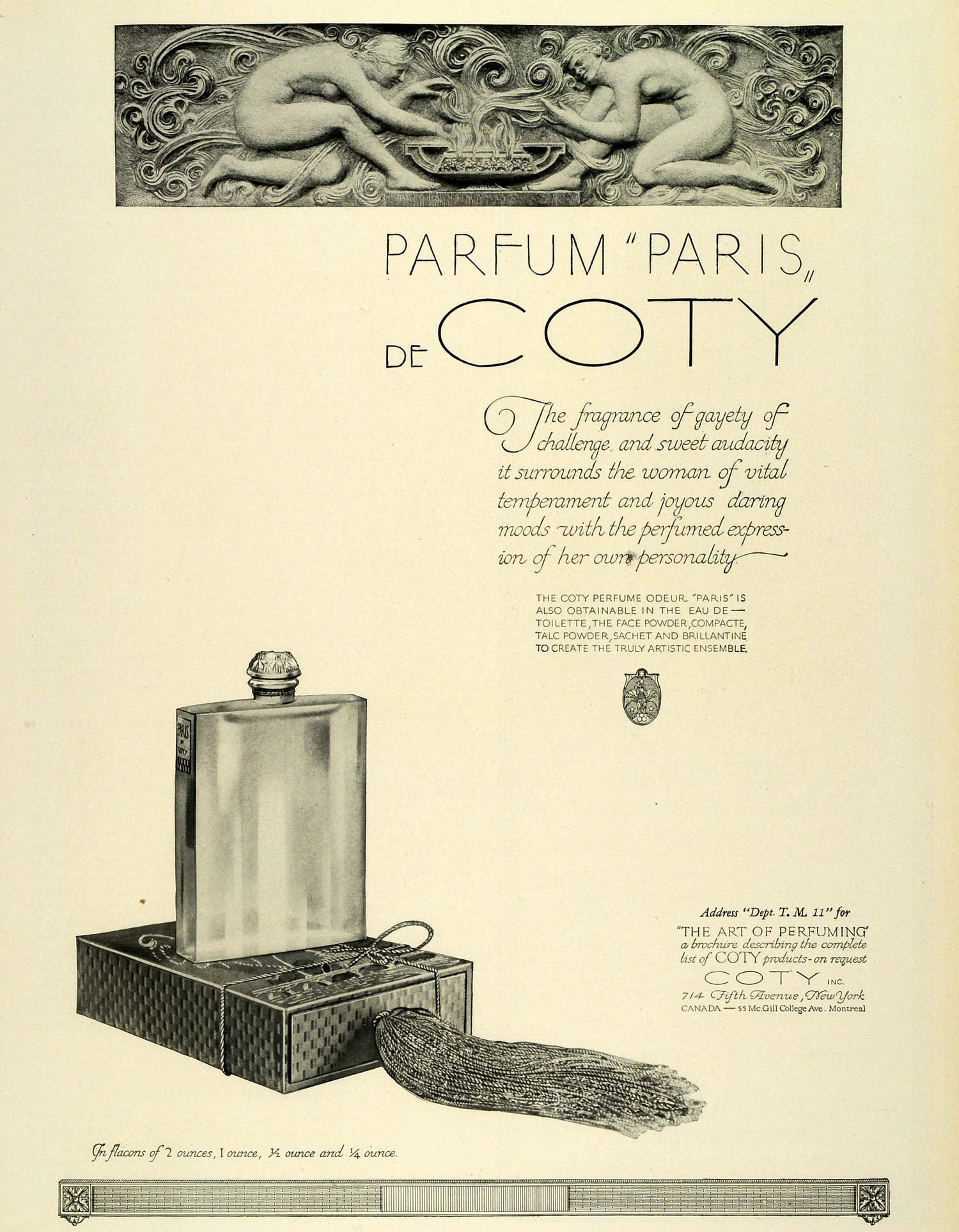 This is an original 1924 black and white print ad for Coty Perfumes.