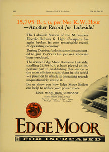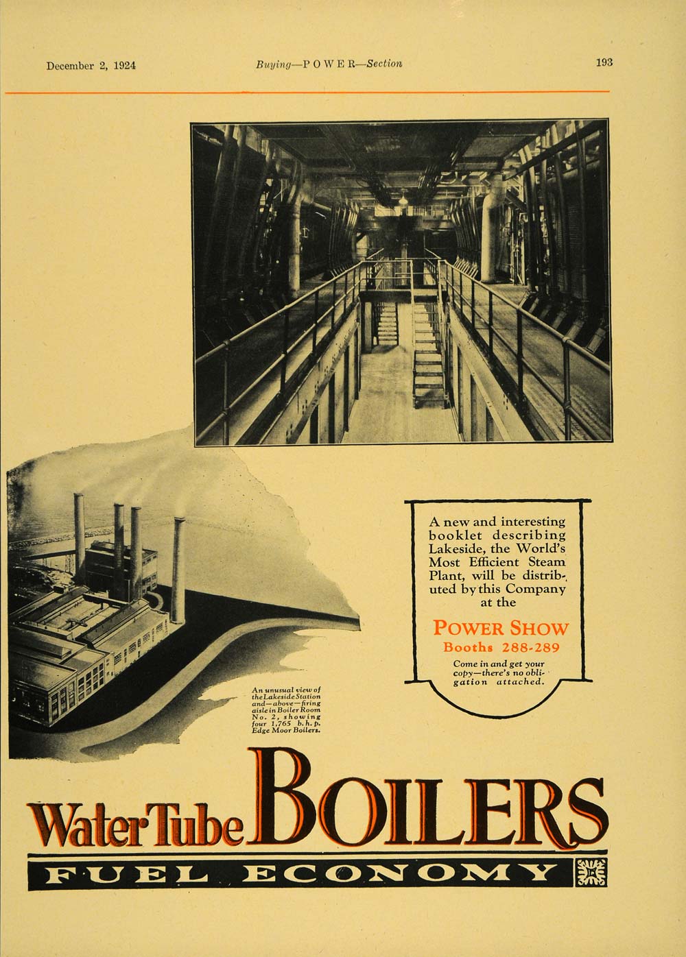 Illustrated in the image is an unusual view of the Lakeside Station and firing aisle in Boiler Room showing four 1,765 b.h.p. Edge Moor Boilers.