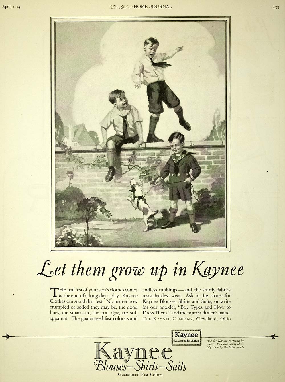 This is an original 1924 black and white print ad for Kaynee Clothes for children