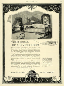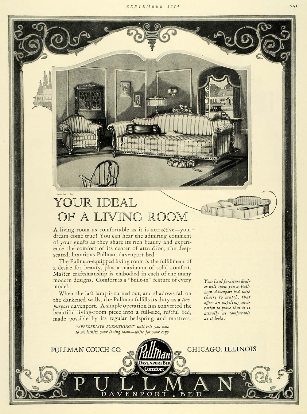 This is an original 1924 black and white print ad for the Pullman Couch Company in Chicago, specially featuring Suite No. 2807.