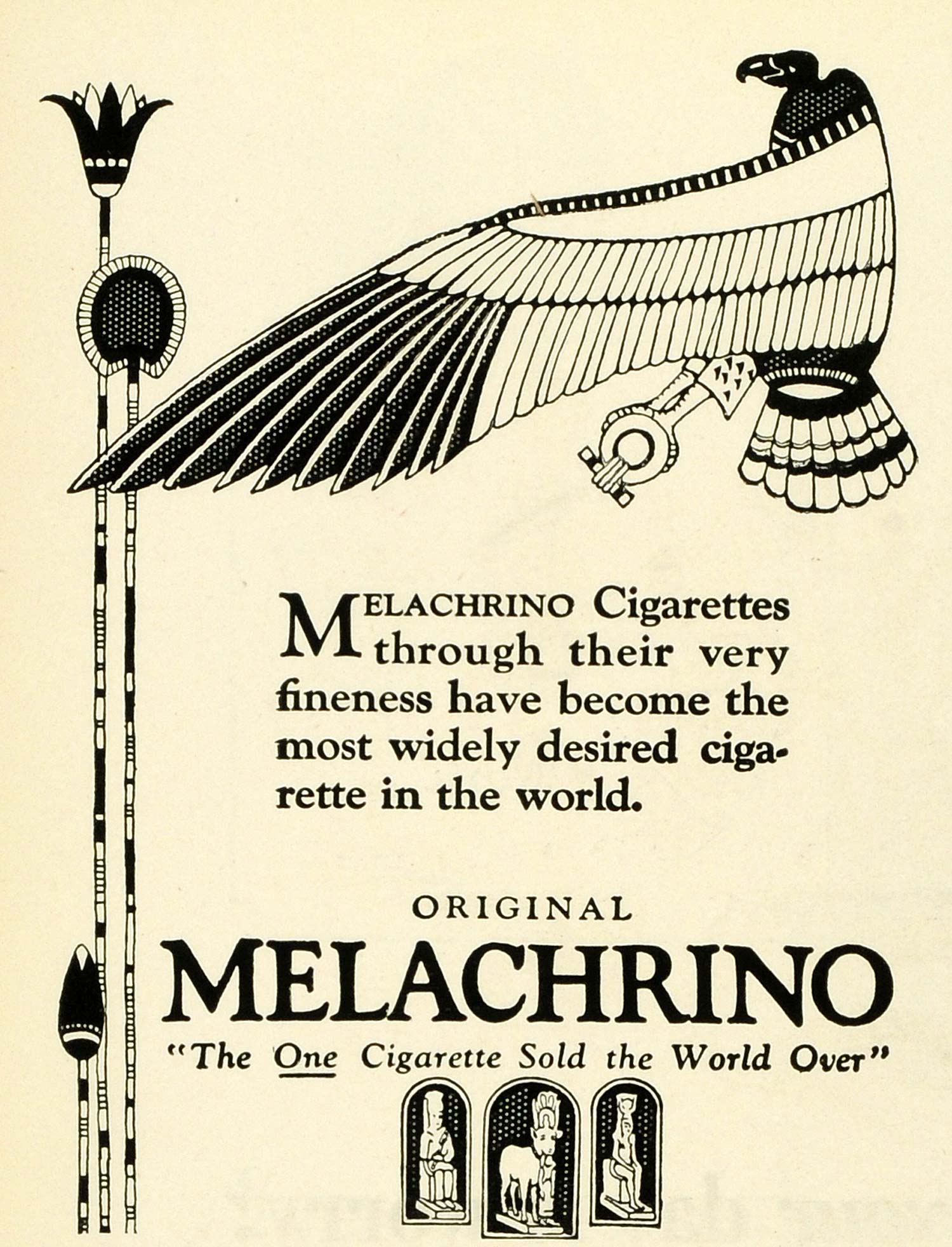 This is an original 1924 black and white print ad for Melachrino Cigarettes.
