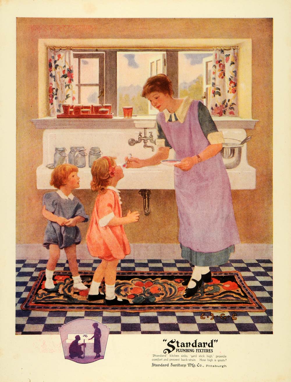 This is a stunning rare original 1924 color print ad for Standard Plumbing Fixtures, a product line by the Standard Sanitary Manufacturing Company in Pittsburgh.