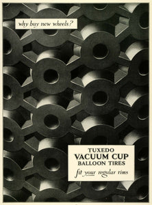 This is an original 1924 black and white print ad for Tuxedo Vacuum Cup Balloon Tires.