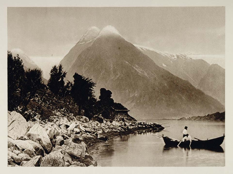 1924 Boat Fjaerlandsfjord Fjord Sogn og Fjordane Norway - ORIGINAL SC1