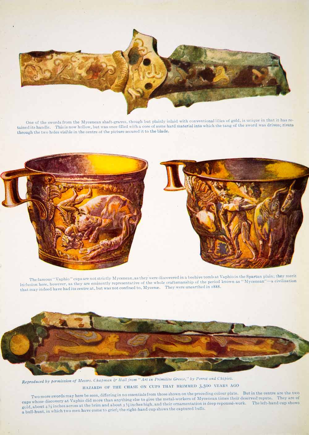 This is an original 1924 color print of the "Hazards of the Chase on Cups that Brimmed 3,500 Years Ago."