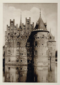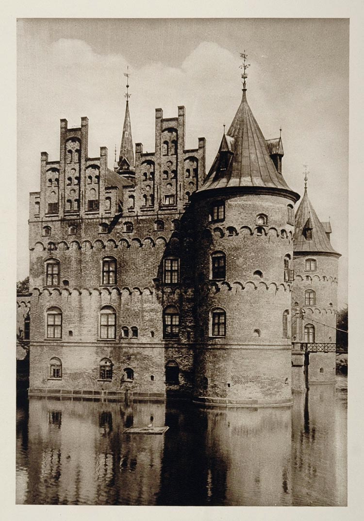 1924 Egeskov Renaissance Moat Castle Faaborg Denmark - ORIGINAL PHOTOGRAVURE SC1