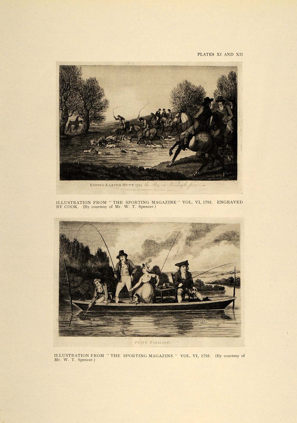 This is an original 1924 halftone print of two illustrations engraved by Cook from The Sporting Magazine, Vol. VI, 1795. The images measure approx. 5 x 3.5 inches each with a border which makes this item measure approx. 8 x 11 inches. Please note that there is no printing on the reverse.