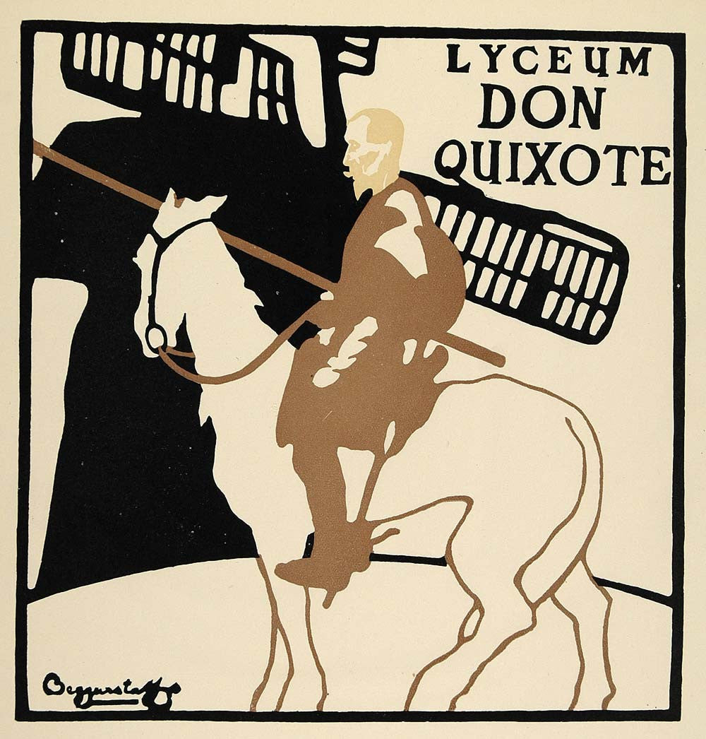 This is an original 1924 three-color lithograph of a theatrical poster, designed by the Beggarstaff Brothers (James Pryde and William Nicholson) in 1895, for the play Don Quixote at the Lyceum Theatre.