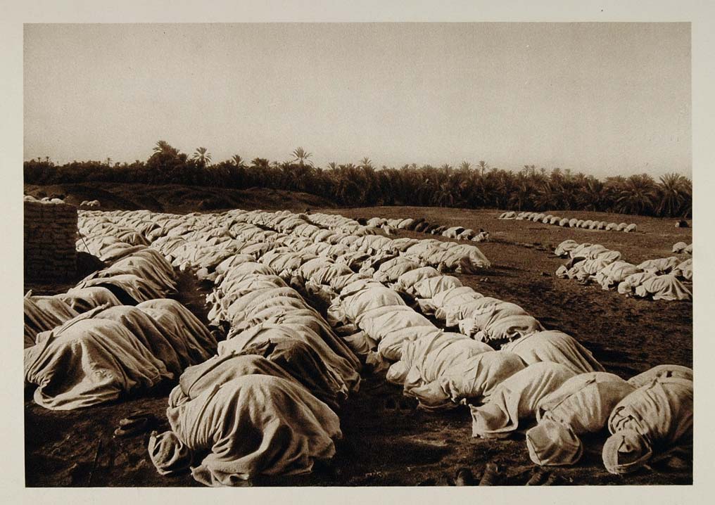 1924 Muslims Praying Biskra Oasis Algeria Photogravure - ORIGINAL NAF1