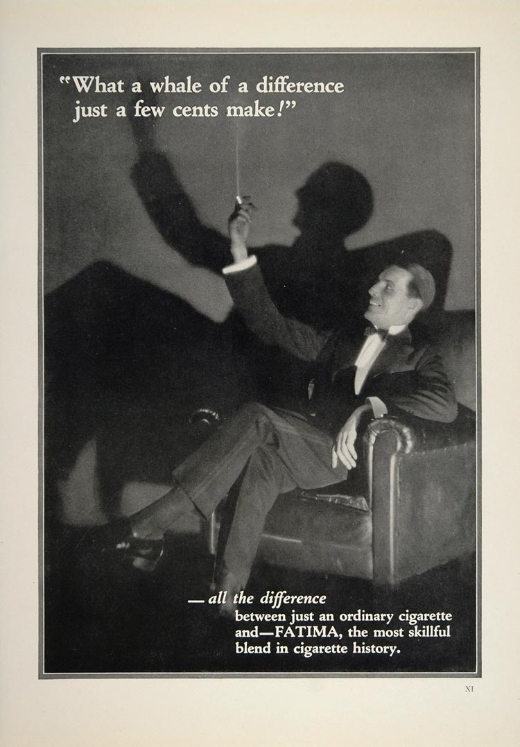 This is an original 1924 black and white print ad for Fatima Cigarettes.