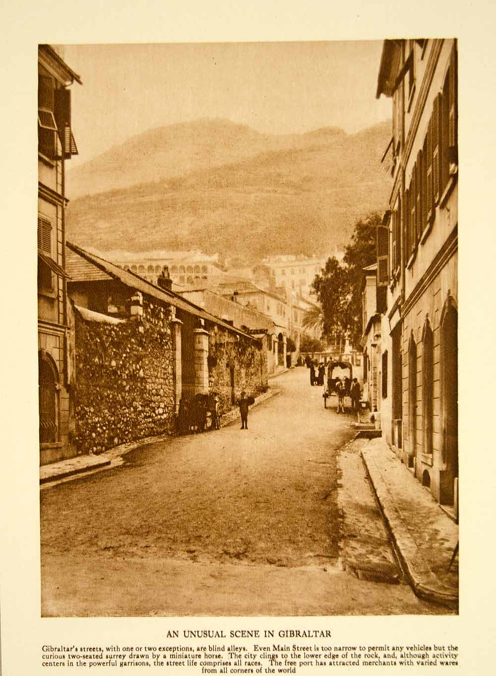This is an original 1924 sepia photogravure of a narrow street in the British Overseas Territory of Gibraltar.