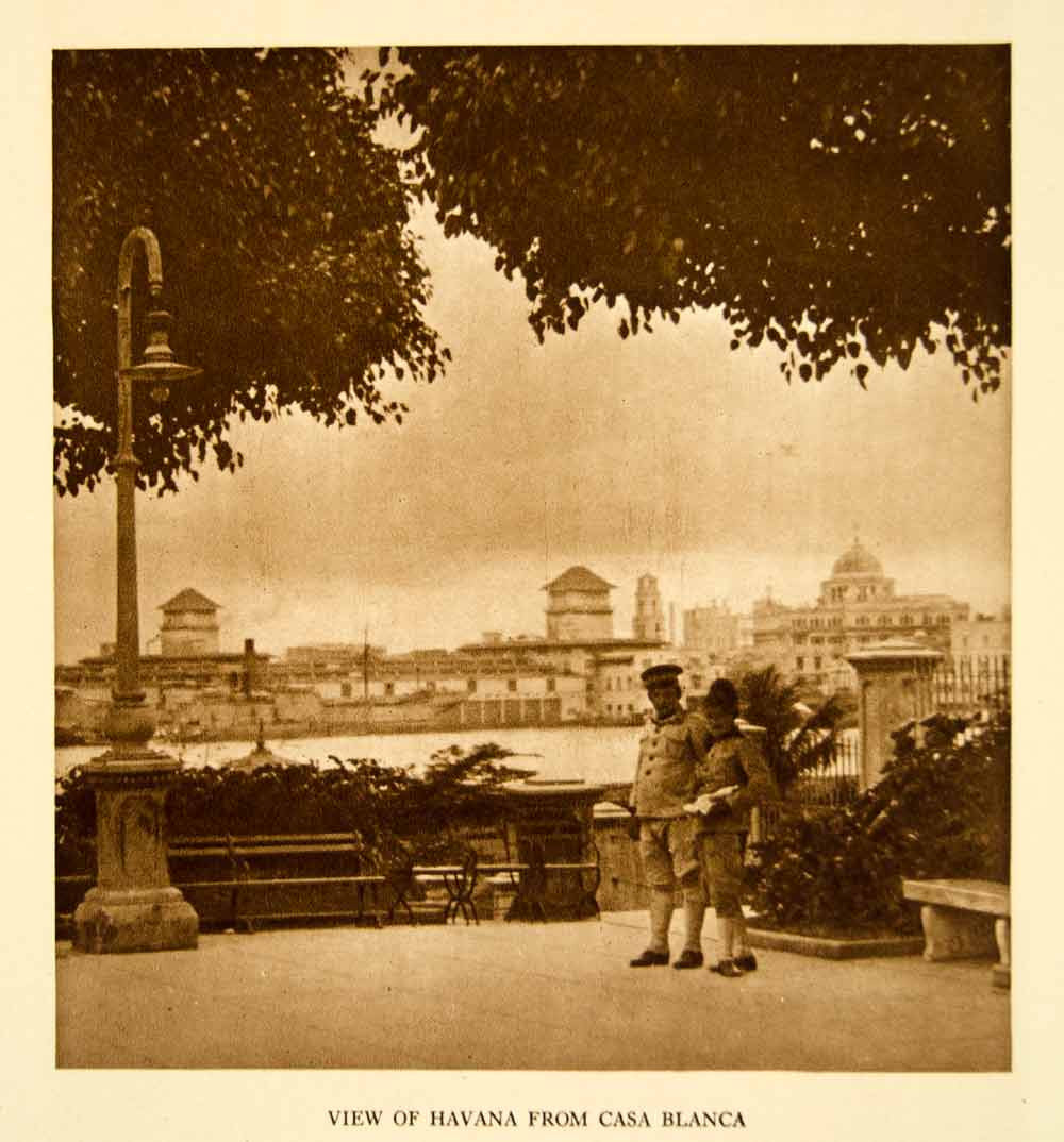 This is an original 1924 sepia photogravure of a view of Havana, Cuba from Casa Blanca.