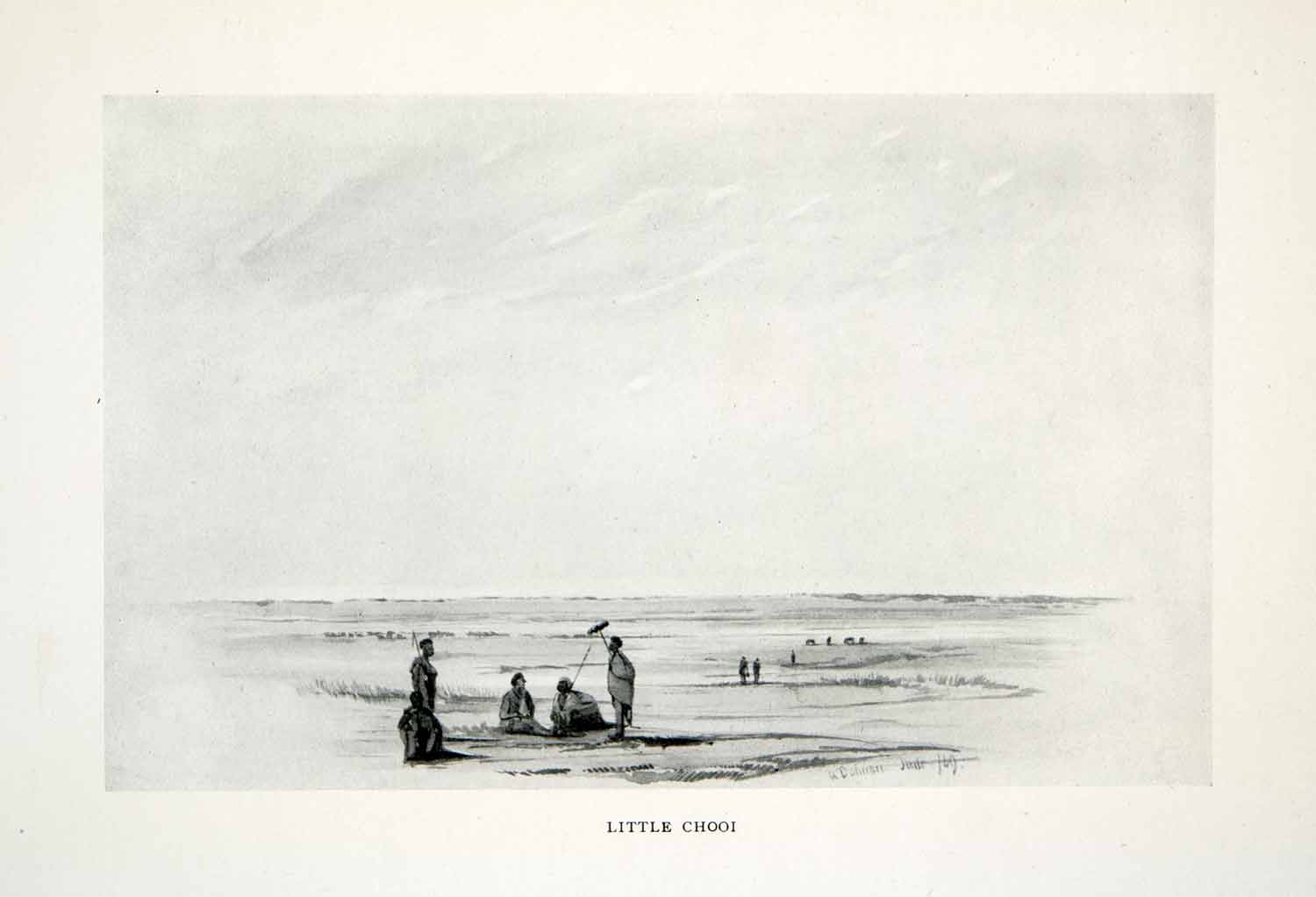 This is an original 1924 black and white halftone print of "Little Chooi." This image captures a scene at "Little Chooi," a natural salt pan situated at the northern edge of the Mokala forest. Alfred Dolman encountered the natural formation, describing its appearance as a large circular hollow incrusted by saline.