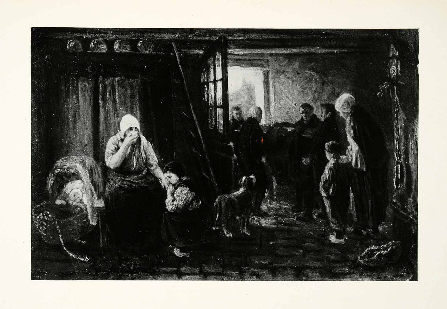 1924 Print Burial Josef Israels Dutch Painter Woman Children Coffin Pall XAG7