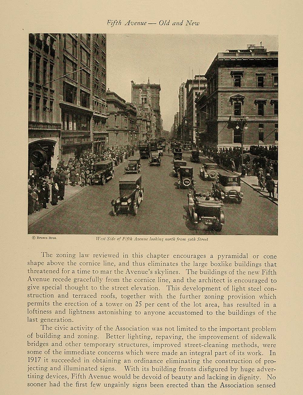 This is an original 1924 halftone print of the west side of Fifth Avenue looking north from 50th Street in New York City.