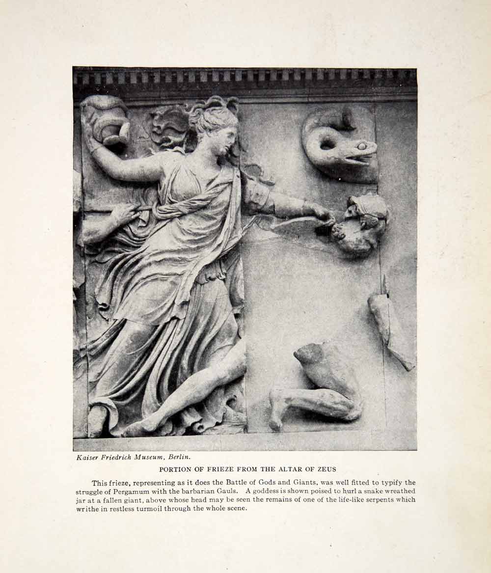 This is an original 1924 black and white halftone print of a "Portion of Frieze from the Altar of Zeus."