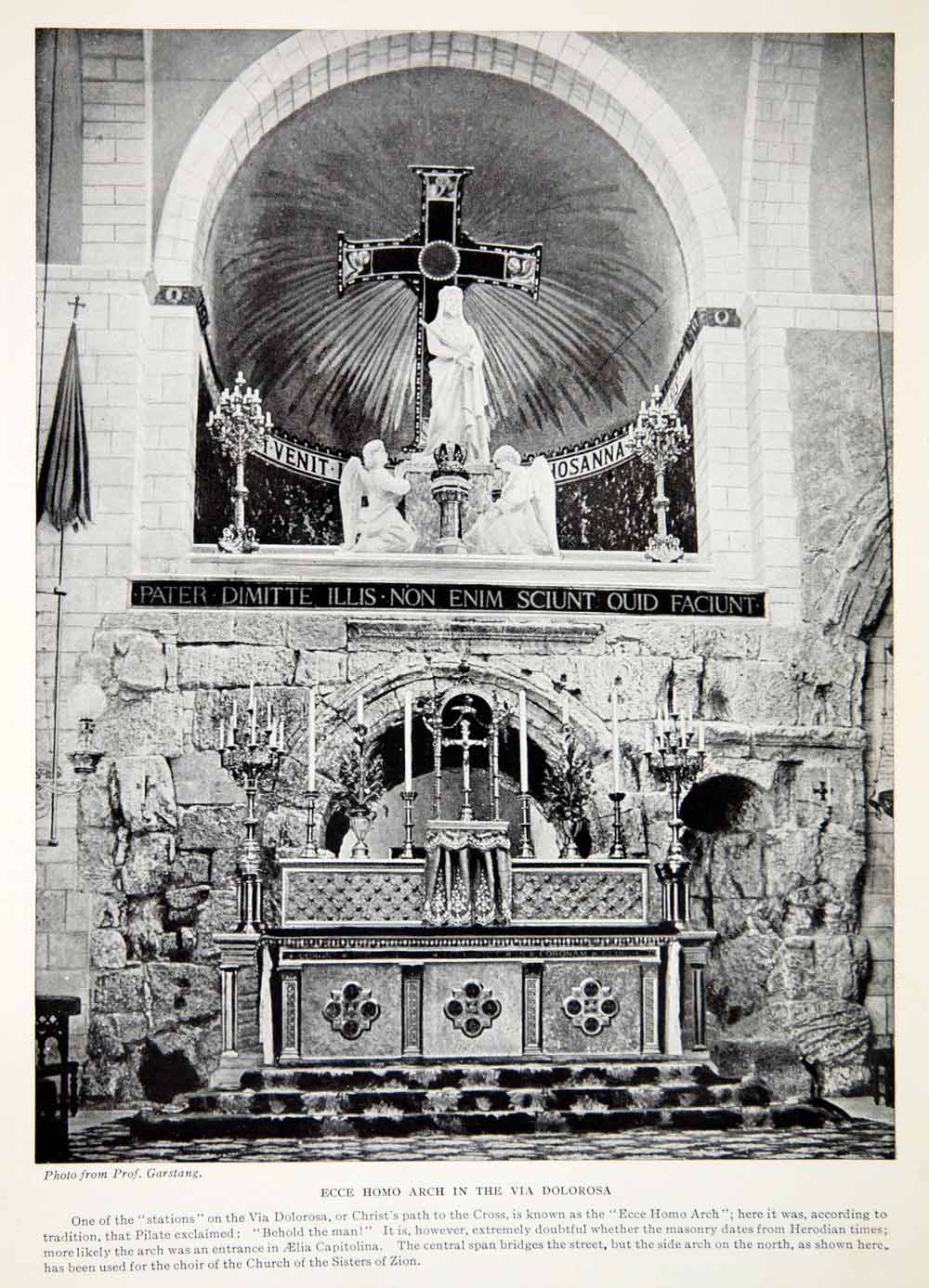 This is an original 1924 black and white halftone print of "Ecce Homo Arch in the Via Dolorosa."